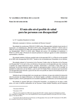 Este documento, emitido por la Asamblea Mundial de la Salud, insta a los Estados Miembros a adoptar un enfoque inclusivo que integre las dimensiones de género y discapacidad. Promueve la participación activa de las personas con discapacidad en la toma de decisiones y el diseño de programas, garantizando su acceso a servicios de salud eficaces dentro de la cobertura sanitaria universal. También aborda la igualdad en la protección ante desastres y emergencias, así como el acceso equitativo a intervenciones de salud pública. Como estrategia de trabajo, orienta la eliminación de barreras legales que limitan el acceso a la salud.